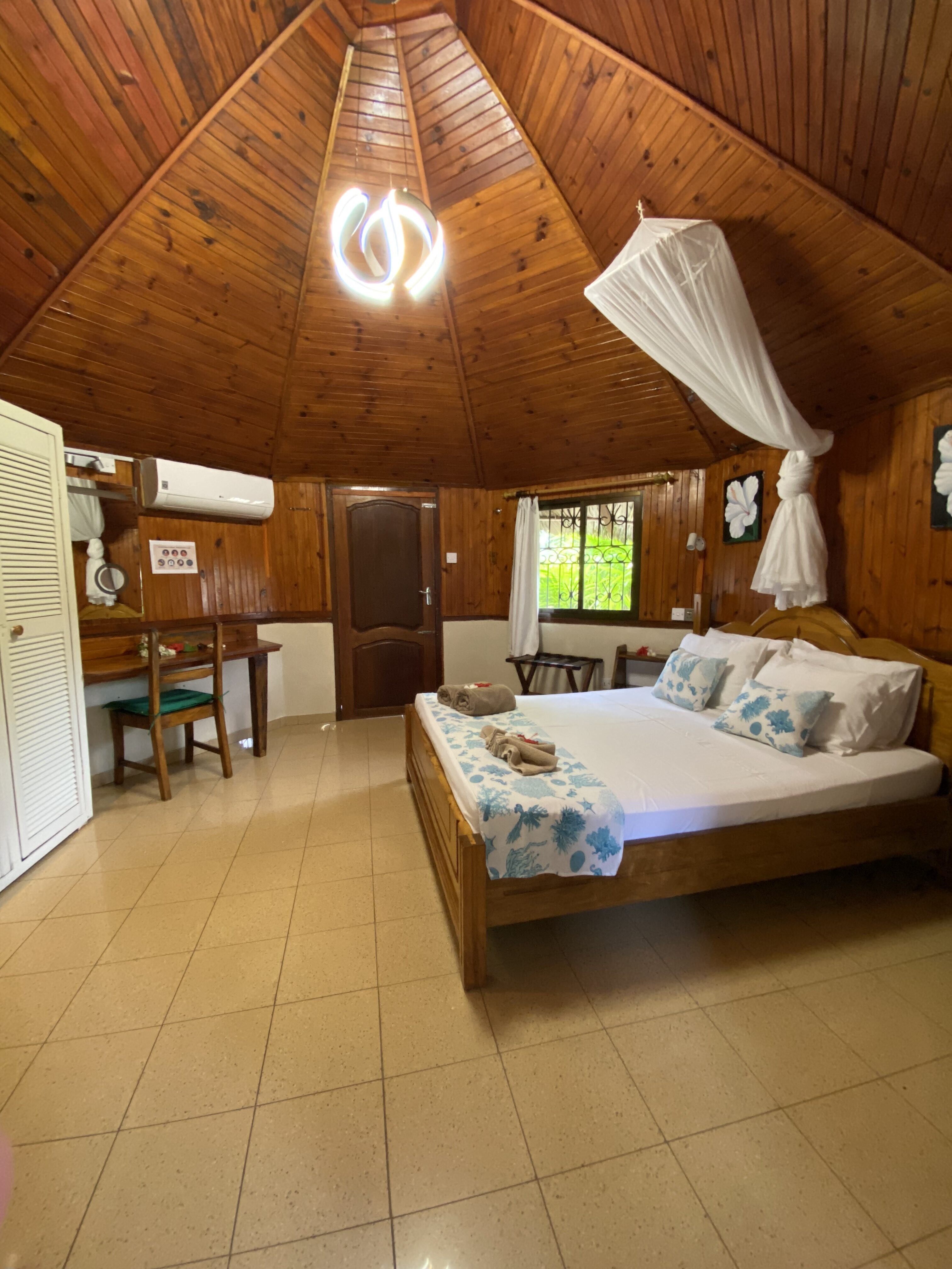 Tani to oczywiście pojęcie względne i dla każdego inna kwota może być uznawana za niską. Najtańsze noclegi na Seszelach na Bookingu zaczynają się od 250-300 PLN za dobę bez wyżywienia. Co ciekawe, na wyspach raczej rzadkością jest nocleg z posiłkiem. Tutaj najpopularniejszą formą jest self-catering, czyli samodzielne gotowanie. Zdecydowana większość noclegów (pomijając duże hotele) wyposażona jest w aneks kuchenny i łazienkę, więc jak najbardziej jest to do zrobienia.